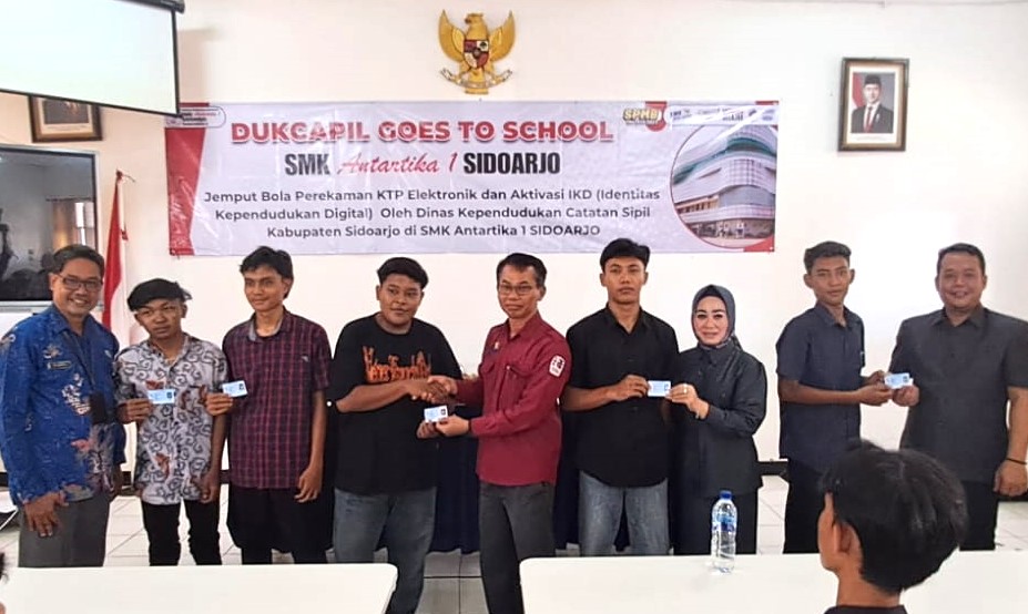 Edukasi dan ajakan tersebut disampaikan oleh Anggota Dewan Sidoarjo dari Komisi A, yakni Raymond Tara Wahyudi, ST dan Elok Suciati, SH dalam kegiatan ‘Dukcapil Goes To School’, yakni Dukcapil Sidoarjo keliling sekolah melakukan jemput bola perekaman KTP Elektronik dan aktivitas IKD (Identitas Kependudukan Digital) di SMK Antartika 1 Sidoarjo, pada (23/10/2025) siang.