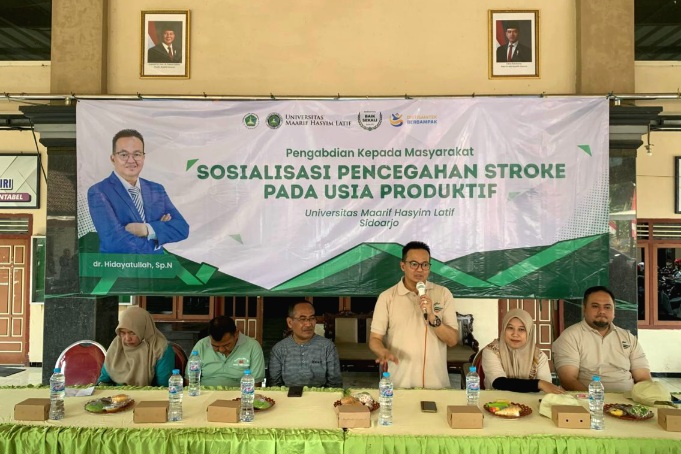 LIPUTANINSPIRASI, Sidoarjo— Mahasiswa Kuliah Kerja Nyata (KKN) Universitas Maarif Hasyim Latif melaksanakan kegiatan bakti sosial bertajuk “Sosialisasi Pencegahan Stroke Pada Usia Produktif” di Balai Desa Kajeksan, pada hari Sabtu tanggal 30 Agustus 2025.