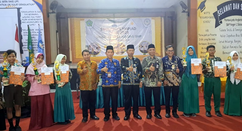 Gelar English Olympiad 2025/2026 MGMP Bahasa Inggris SMP se Kabupaten Sidoarjo prosesi pembukaan dilakukan langsung oleh Kepala Dinas Dikbud Sidoarjo Dr. Tirto Adi, M.Pd didampingi oleh Ketua MKKS SMP Negeri sekaligus Pembina MGMP Bahasa Inggris SMP Aris Setiawan, S.Pd M.Pd juga Ketua MGMP Bahasa Inggris SMP Sidoarjo, Toto Lumaksono, S.S M.Pd pada (5/2026) di Aula SMP Negeri 1 Sidoarjo.