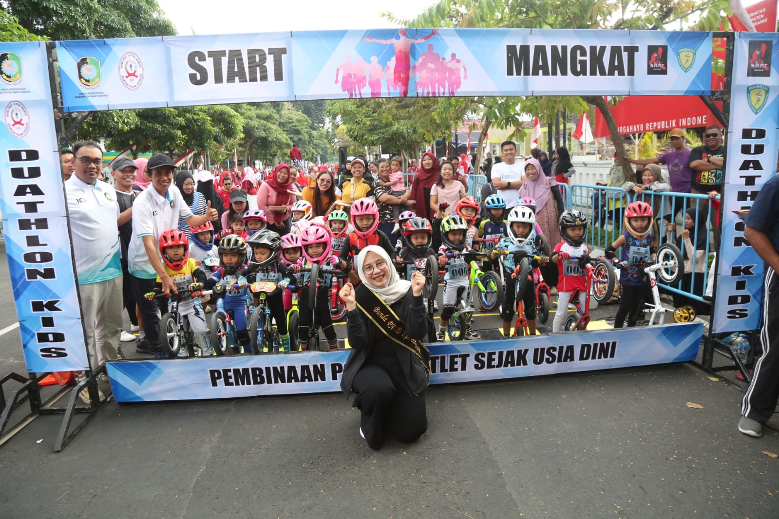 “Kita bentuk seperti duathlon, ada gabungan antara sepeda dan atletik. Sehingga ini melatih tidak hanya fisik, tapi juga motorik anak-anak sejak dini,” jelasnya.