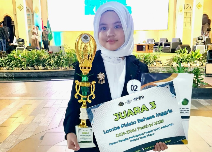 “Alhamdulillah sangat bersyukur karena tidak mudah melalui beberapa tahapan kompetisi ini dan bersaing dengan siswa SMP dan SMA,” ungkap Desmilana yang pernah Juara 1 English Speech Contest oleh BIMA Aksi 2.0 Tingkat Jawa Timur Open 2025 (U17) Piala Gubernur Jawa Timur
