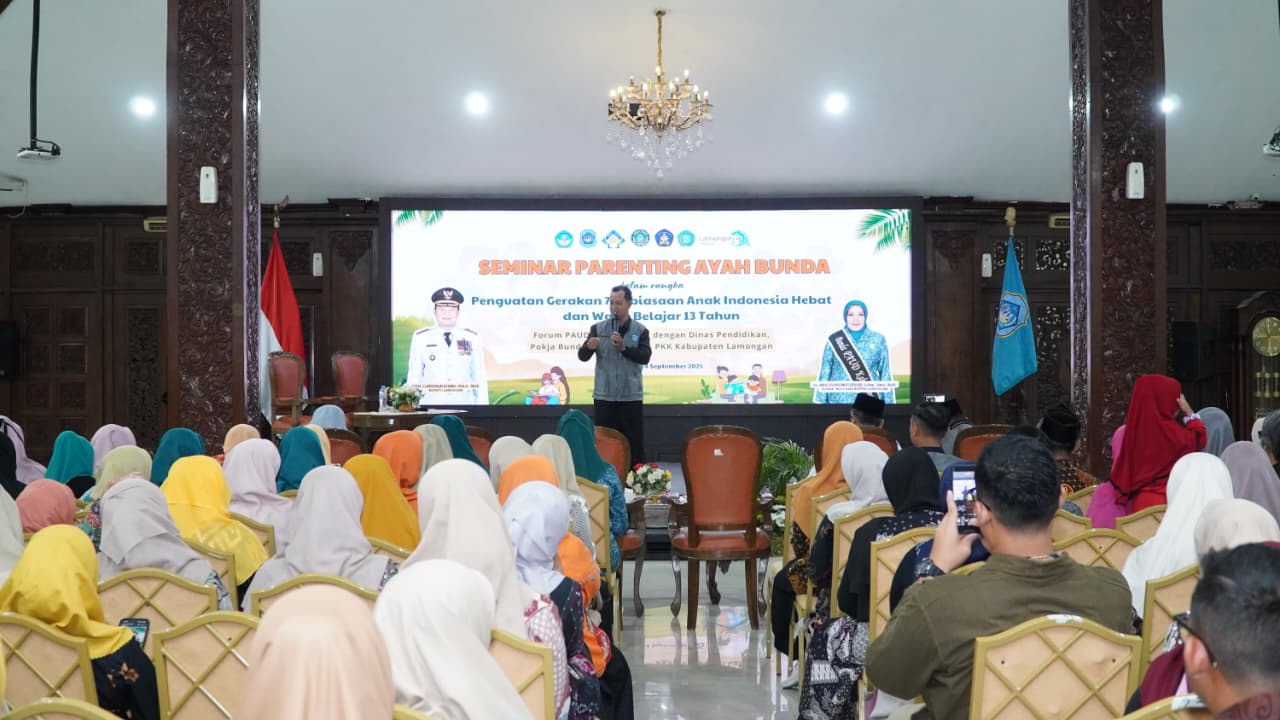 “Pemerintah hadir dan bersungguh-sungguh dalam keberhasilan realisasi gerakan tujuh Kebiasaan Anak Indonesia Hebat (KAIH) dan wajib belajar (Wajar) tiga belas tahun,” tutur Bupati Lamongan Yuhronur Efendi saat membuka seminar parenting ayah bunda dala rangka penguatan gerakan tujuh Kebiasaan Anak Indonesia Hebat (KAIH) dan wajib belajar (Wajar) tiga belas tahun, Rabu (24/9) di Pendopo Lokatantra.