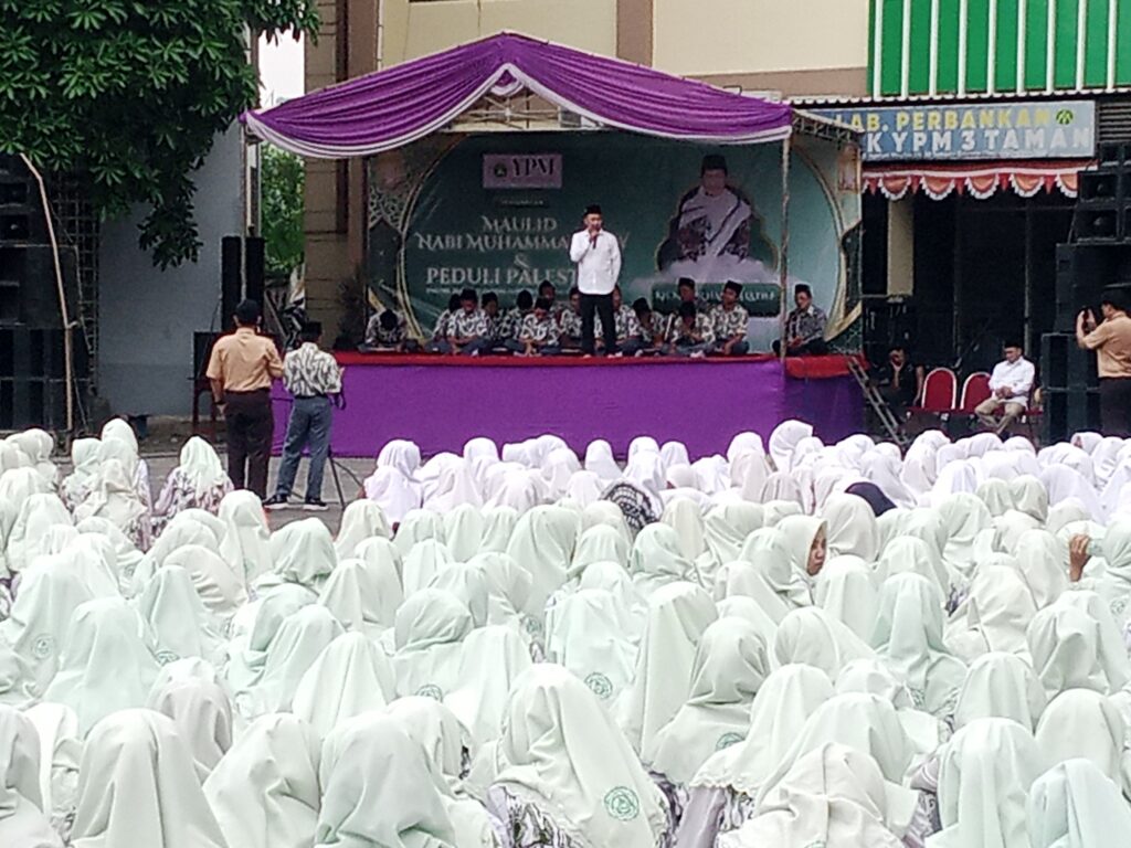 LIPUTANINSPIRASI, Sidoarjo – Ribuan murid SMP YPM 1 Taman, SMK YPM 3 Taman dan Perwakilan Mahasiswa Umaha memadati halaman sekolah Komplek Yayasan Pendidikan dan Sosial Ma’arif (YPM) Megare Ngelom dalam rangka peringatan Maulid Nabi Muhammad SAW & Peduli Palestina. Sebuah acara monumental yang menggabungkan spiritualitas, edukasi, dan kepedulian kemanusiaan.