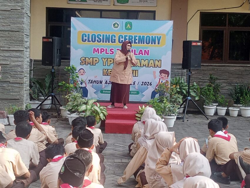 LIPUTANINSPIRASI, Sidoarjo — SMP YPM 1 Taman sukses selenggarakan Closing Ceremony untuk program Masa Pengenalan Lingkungan Sekolah (MPLS) yang berlangsung selama dua bulan, dimulai sejak 12 Juli hingga 26 September 2025. Acara penutupan ini diadakan secara meriah di halaman sekolah dengan dihadiri oleh seluruh siswa baru, guru, dan wali kelas.Jum’at(26/9/2025)